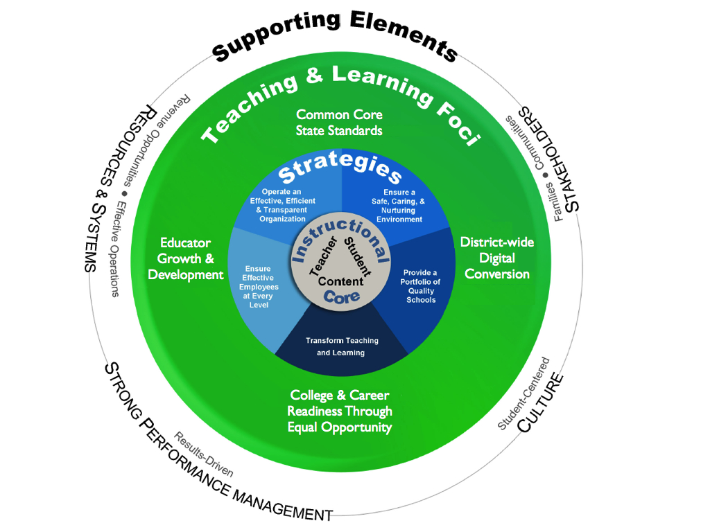 Strategies– Strategies refer to the set of common sense approaches we will use to support the instructional core to help every student achieve his/her maximum potential: